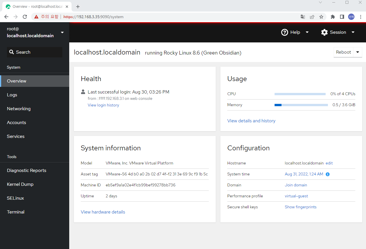 Rocky Linux 설치 후 처음 접속하면 상단에 아래와 같은 메시지를 확인할 수 있다.