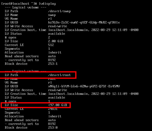 LVM Root Volume Size up